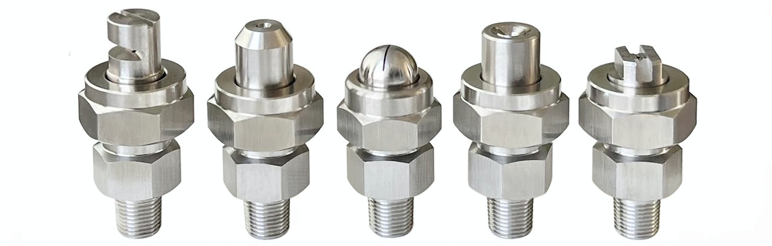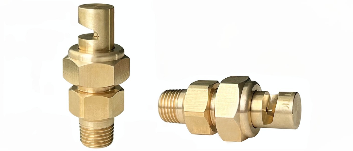 • Wide angle flat fan spraying. • Thread size from 1/8″, 1/4″, 3/8″, 1/2″, 3/4″, 1″. • Brass or stainless steel material. • Droplet size from small- to medium to large.
