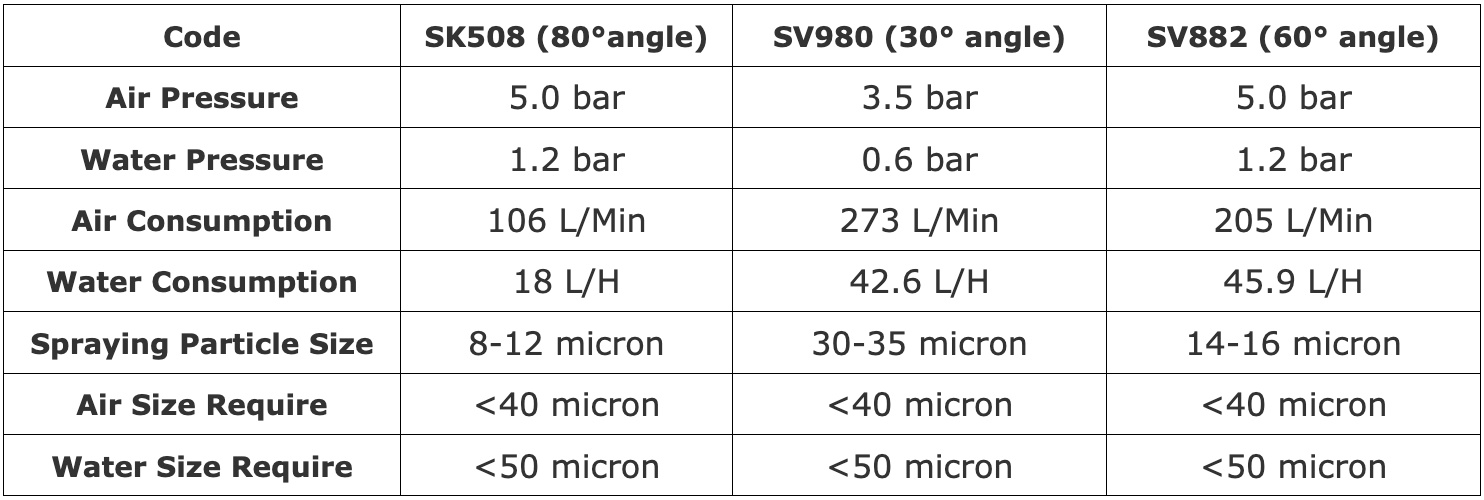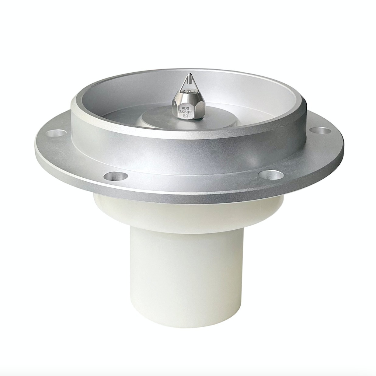 In fact, the advantage is that a specially designed ultrasonic generator is installed at the front end of the nozzle, which uses the energy of the fluid hitting the metal at high speed to make the ultrasonic generator oscillate at a high frequency and micro-atomize the atomized droplets again. Such a delicate design not only It can generate extremely tiny atomized particles. Compared with the general two-fluid nozzle, the spray particle size produced by this series of ultrasonic atomizing nozzles is more uniform and the atomization effect is more ideal.