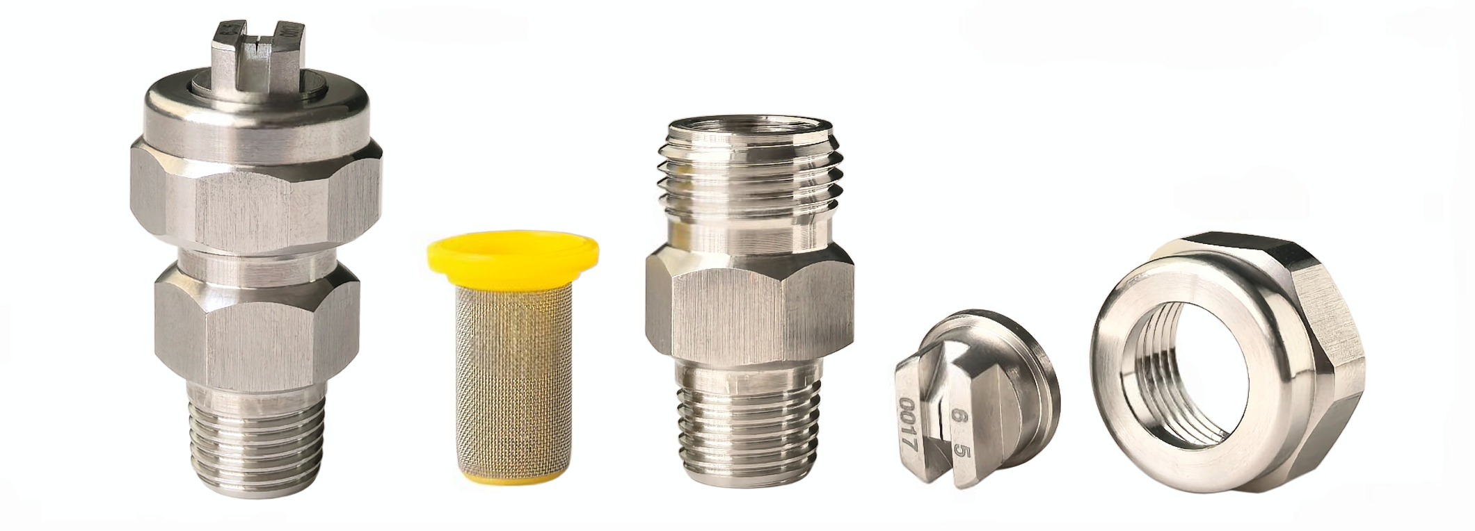 Pressure: 0.5-6 bar, maximum working pressure is 15 bar Mesh: 50 mesh, 80 mesh, 100 mesh, 200 mesh (Default is 80 mesh) Advantage: Built in filtering structure can remove impurities from the liquid and ensure the purity of the sprayed liquid.