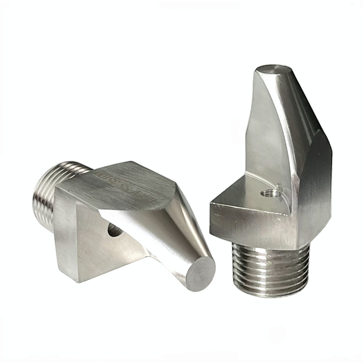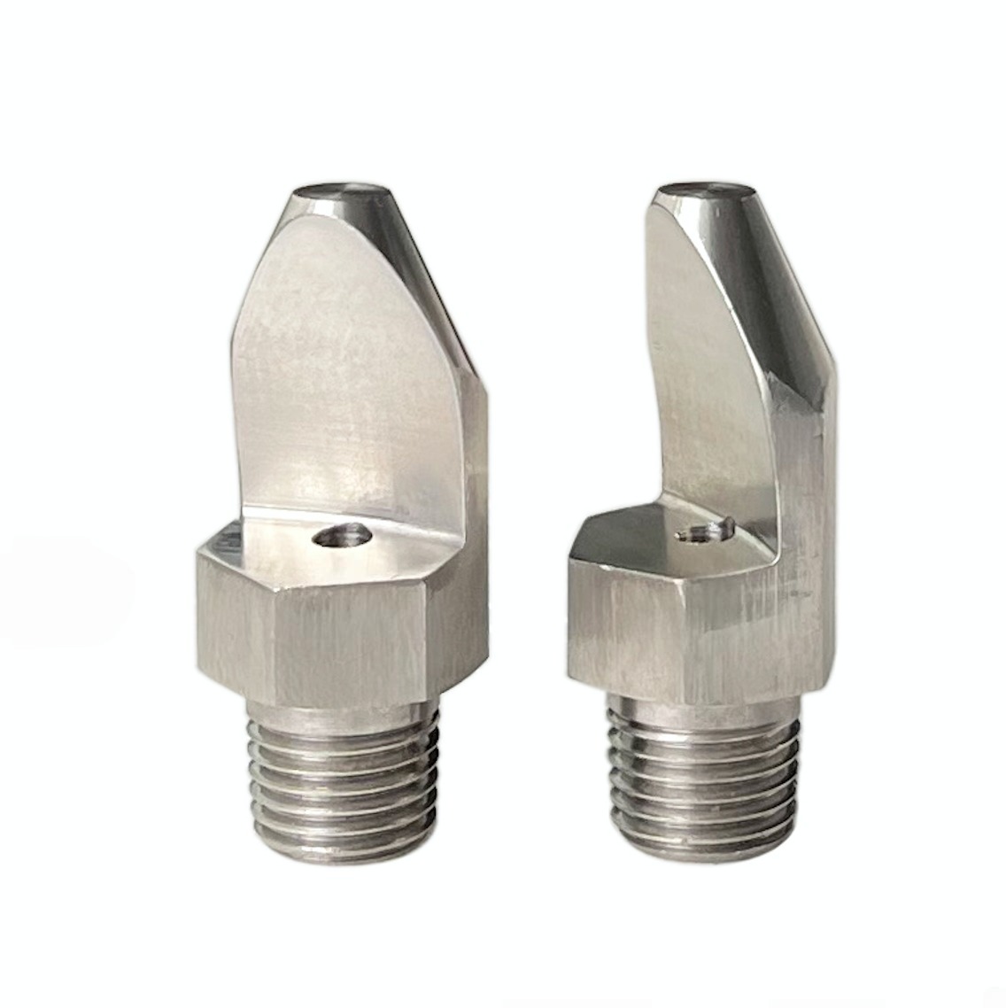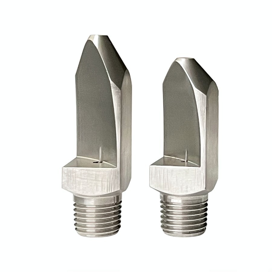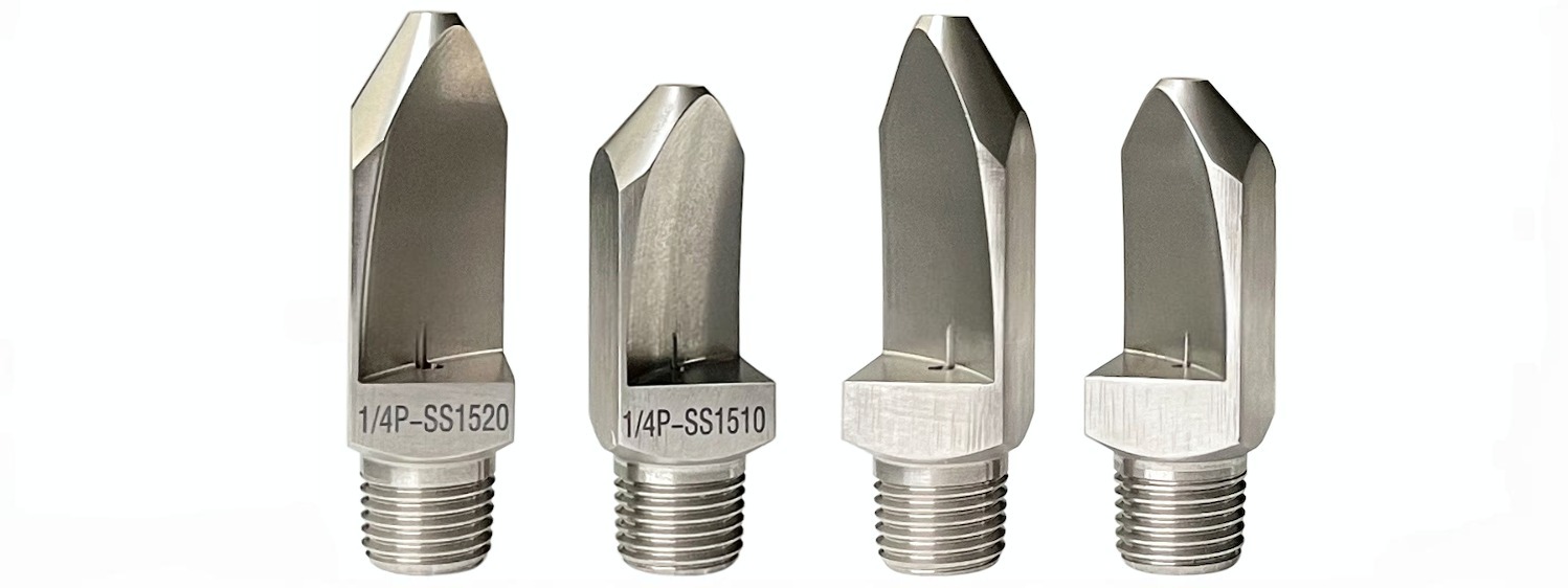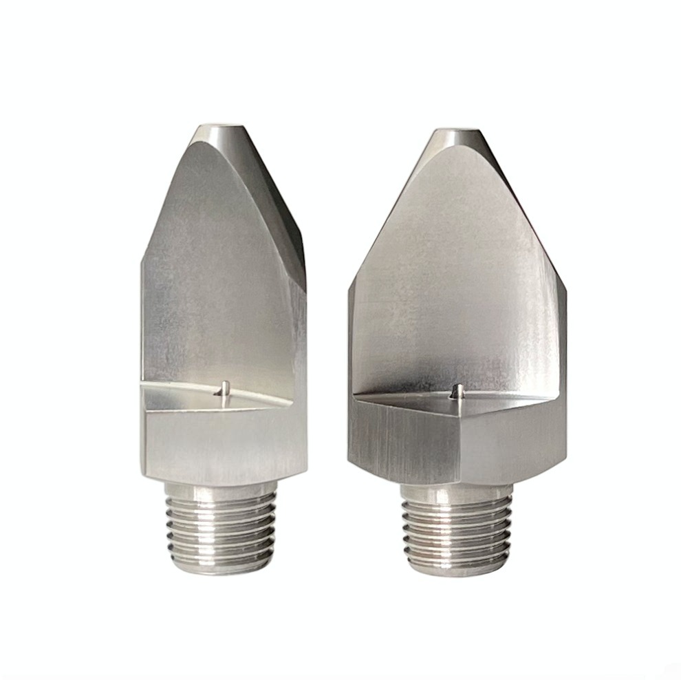 • High impact flat fan spraying. • Thread size from 1/8″ to 3/4″. • High quality stainless steel material. • Spray angles from 15 degree, 25 degree, 35 degree, 40 degree, 50 degree. • Droplet size from small- to medium. • Flat spray pattern distributes the liquid as a flat- or sheet-type spray. • Uniform distribution over a wide range of flow rates and pressures. • Unobstructed flow passages minimize clogging.  • Specially tapered spray pattern is ideal for use in manifold and header applications.