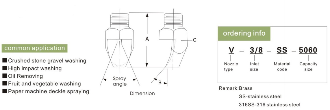 Narrow angle High impact 1/4, 3/8, 1/2, 3/4 inch clean/wash V 15,25,35,40,50 degree Stainless steel brass Flat fan-shaped spray nozzle
