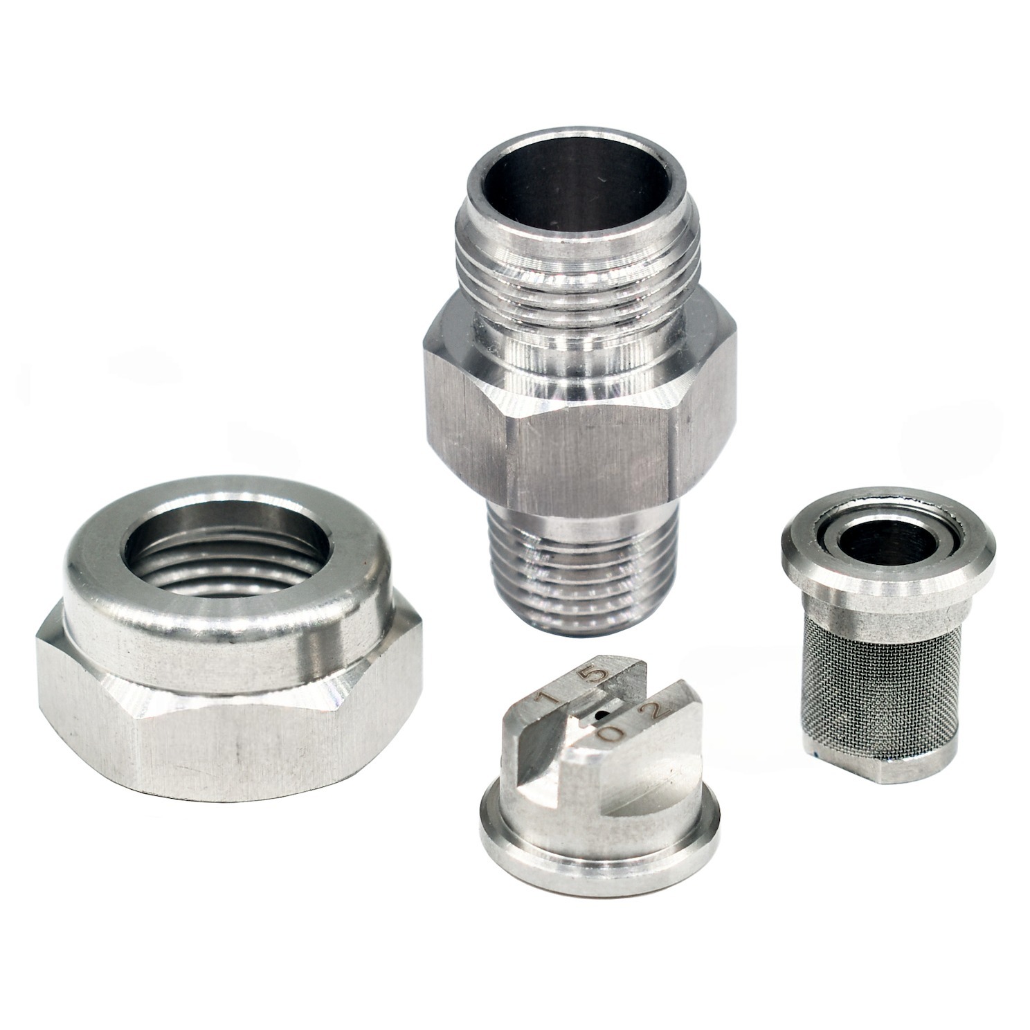 • Standard angle flat fan spraying. • Thread size from 1/8″ to 1/2″. • High quality stainless steel material. • Spray angles from 0 degree to 110 degree. • Droplet size from small to medium to large. • Flat spray pattern distributes the liquid as a flat- or sheet-type spray. • Removable spray head (the head we can produce to flat, full cone or hollow cone). • Easy to be installed.