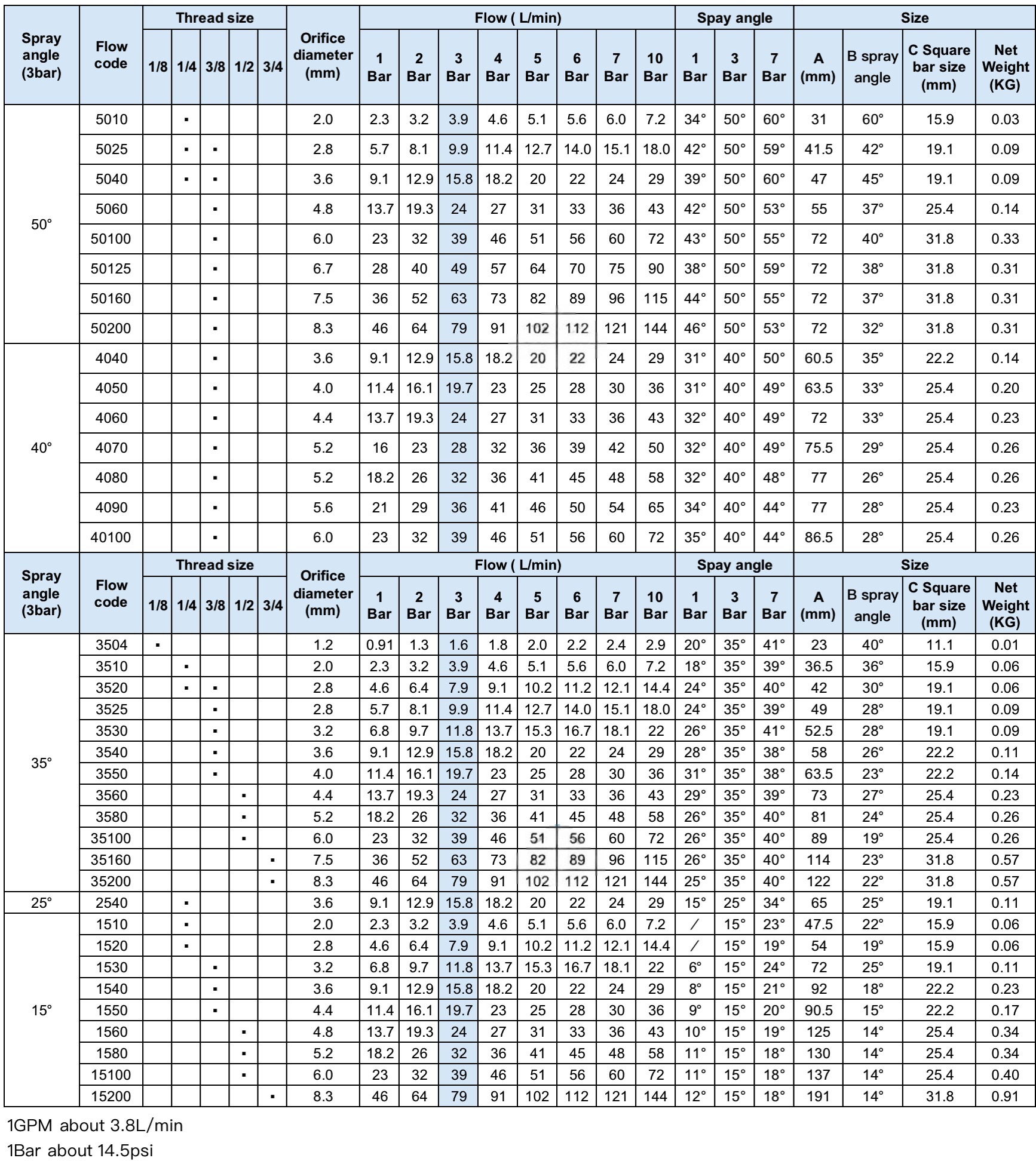 ● Spray angles: 50 degree