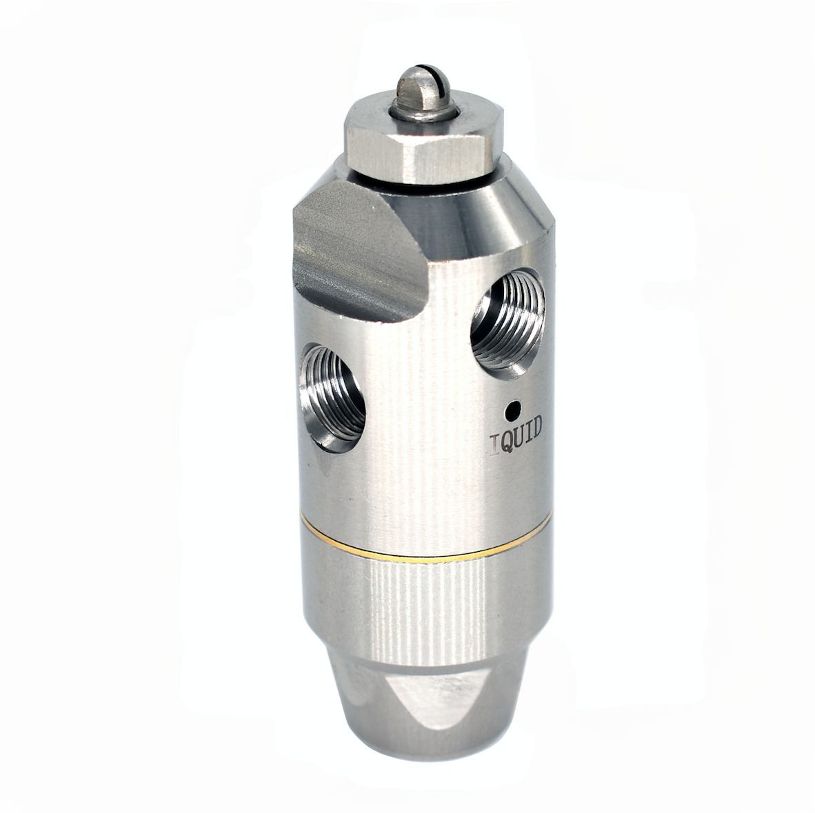 ● Working temperature: 0-100℃ ● Air pressure: 0.2-0.8MPA ● Liquid pressure: 0-0.8MPA ● Medium: water, oil ● Spray angle: flat fan or round atomizing spraying ● Mini design, 304 stainless steel material