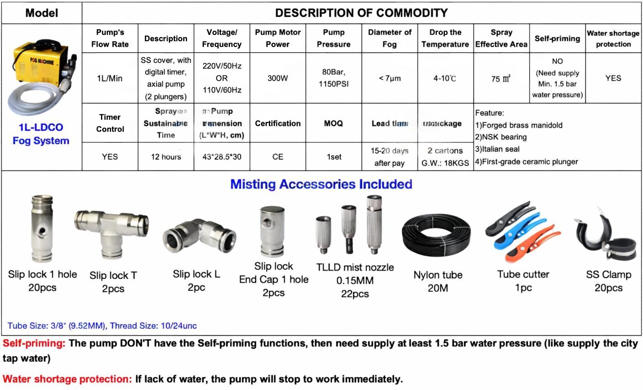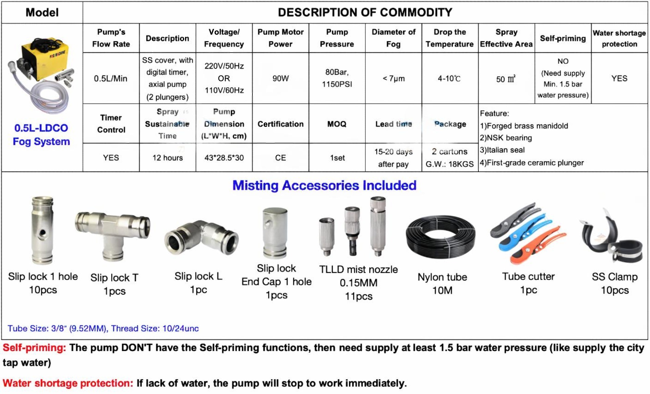 • Application: applied in cooling, humidification system, fog/mist system, garden irrigation etc…