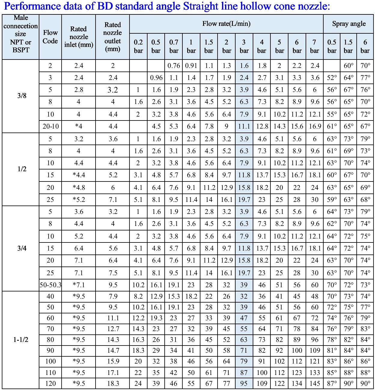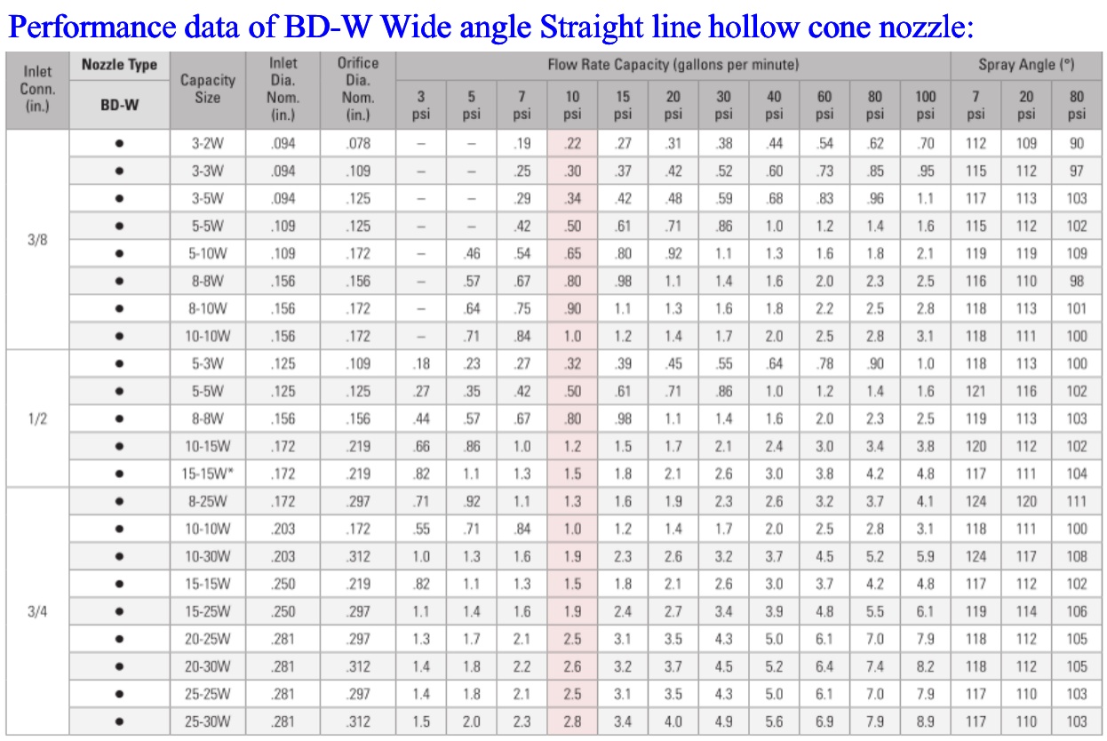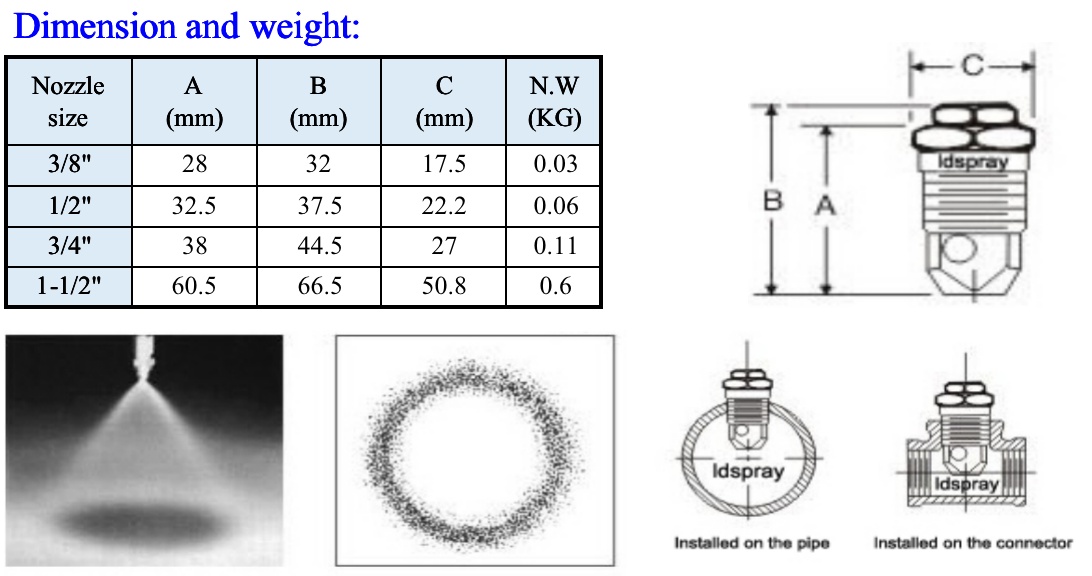 ● Spray pattern: Hollow cone;