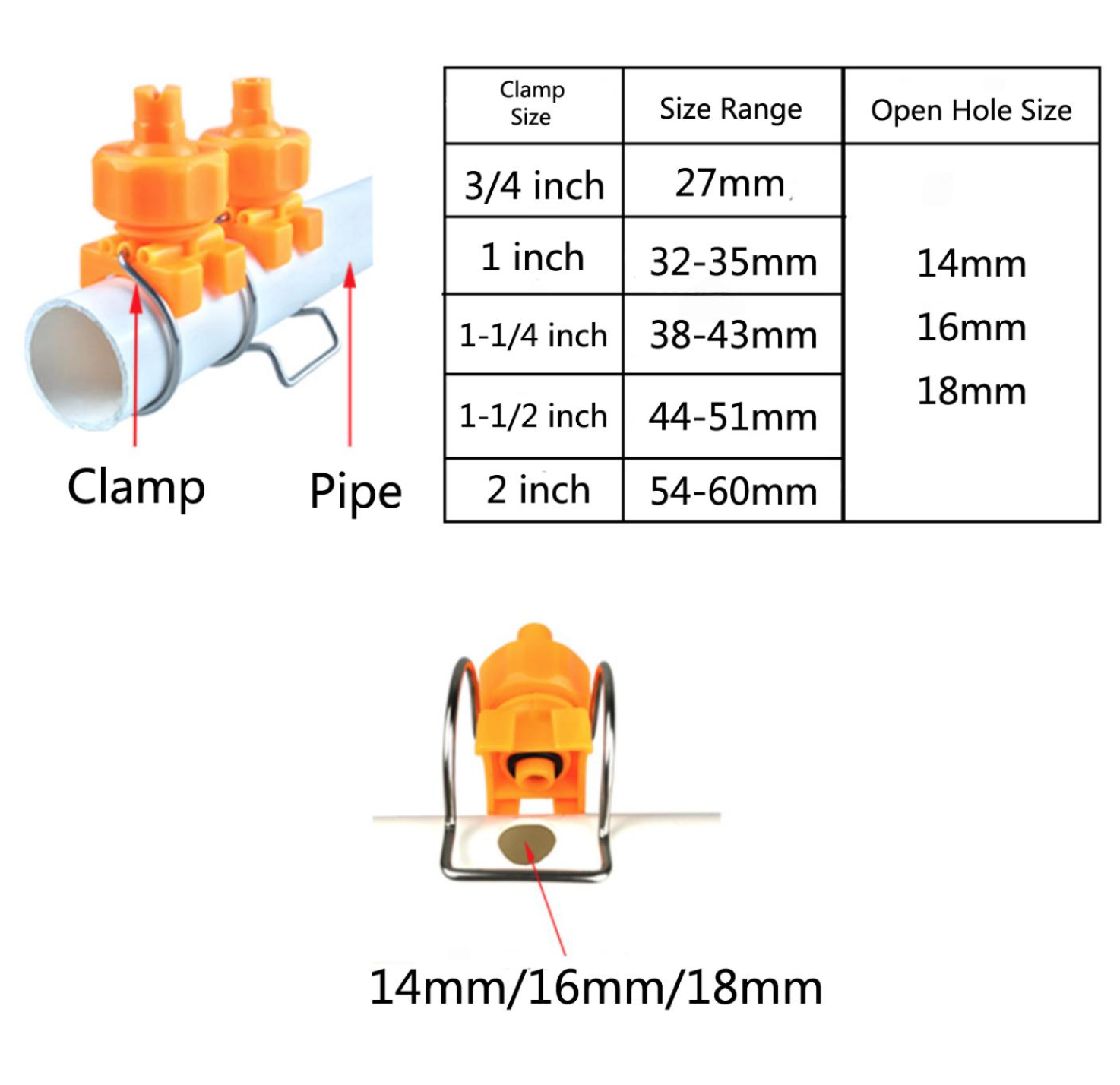• Clamp size with 3/4″ to 2″; • Opening hole size is 14mm; • High quality stainless steel material.