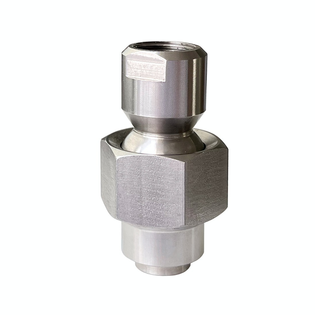 Adjustable nozzle installation angle and spray position, adjustable range of 45°, adjustable ball joint with precision machined surface to ensure sealing and prevent leakage, can withstand pressure of 21 bar, inlet connection size 1 /8″, 1/4″, 3/8″, materials are: stainless steel, brass.
