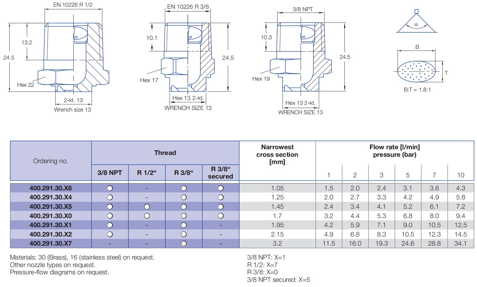 ● Spray angle is 90 x 60 degree oval full cone;